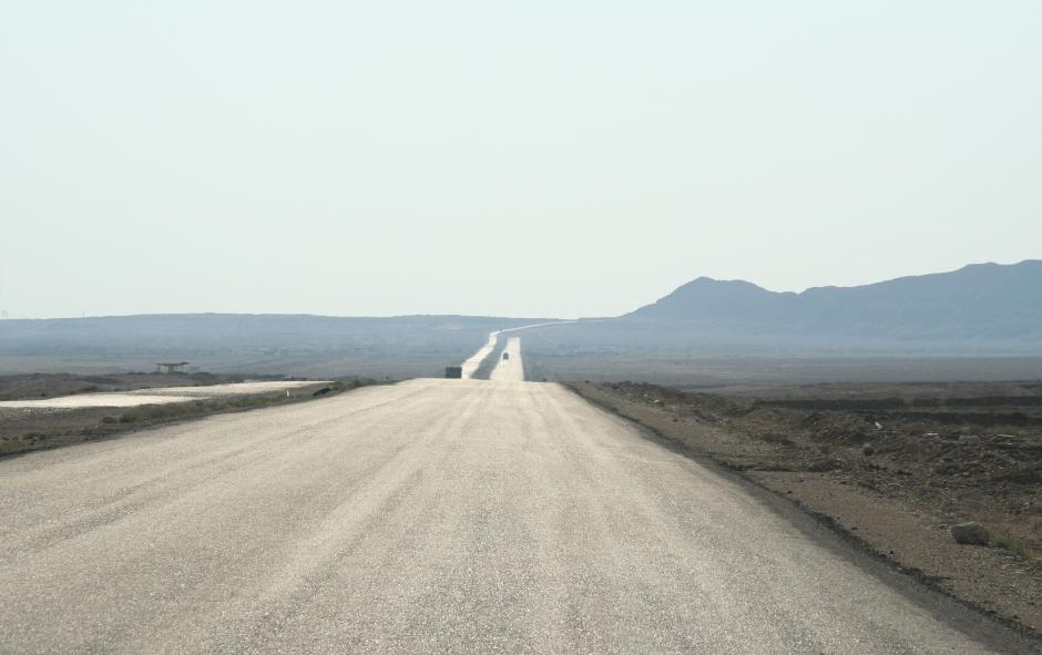 The road from Balkanabat to Turkmenbashi, a vital transport route crossing Turkmenistan, 2 July 2009.