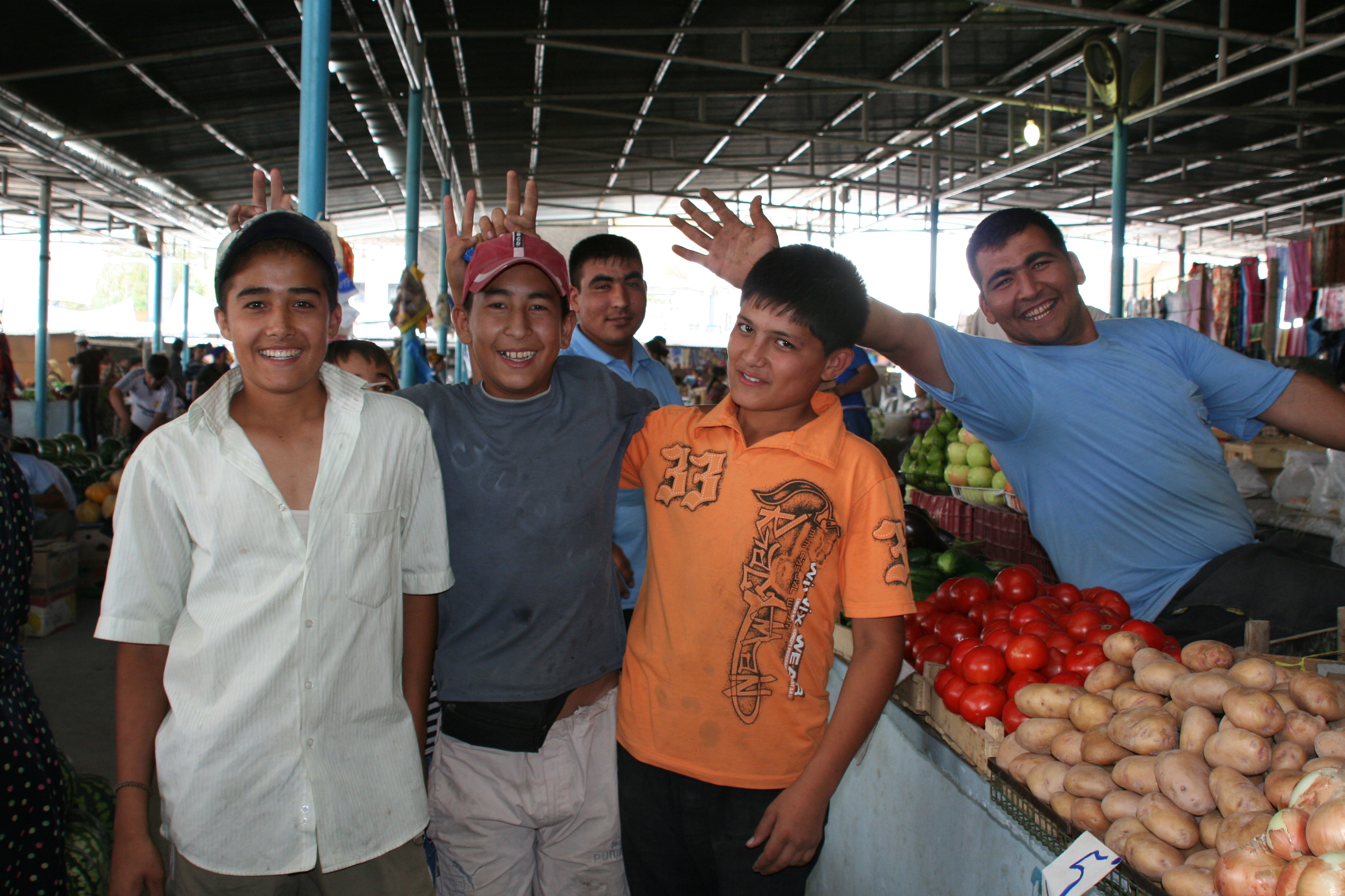 Young Turkmen men at the local market in Balkanabat, Turkmenistan, 30 June 2009.