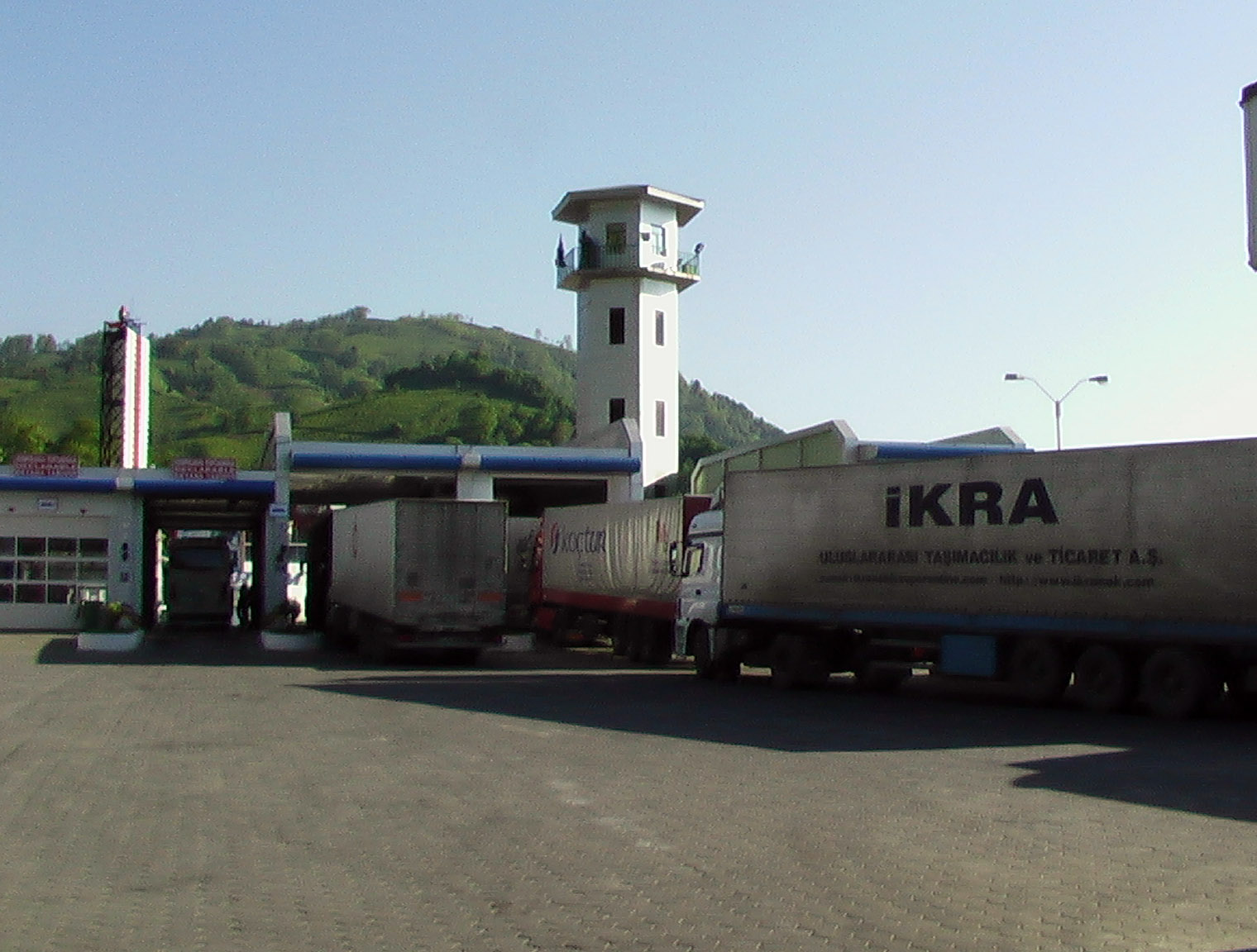 Cargo trucks at Sarpi, Georgia, on the border with Turkey, 17 May 2007.