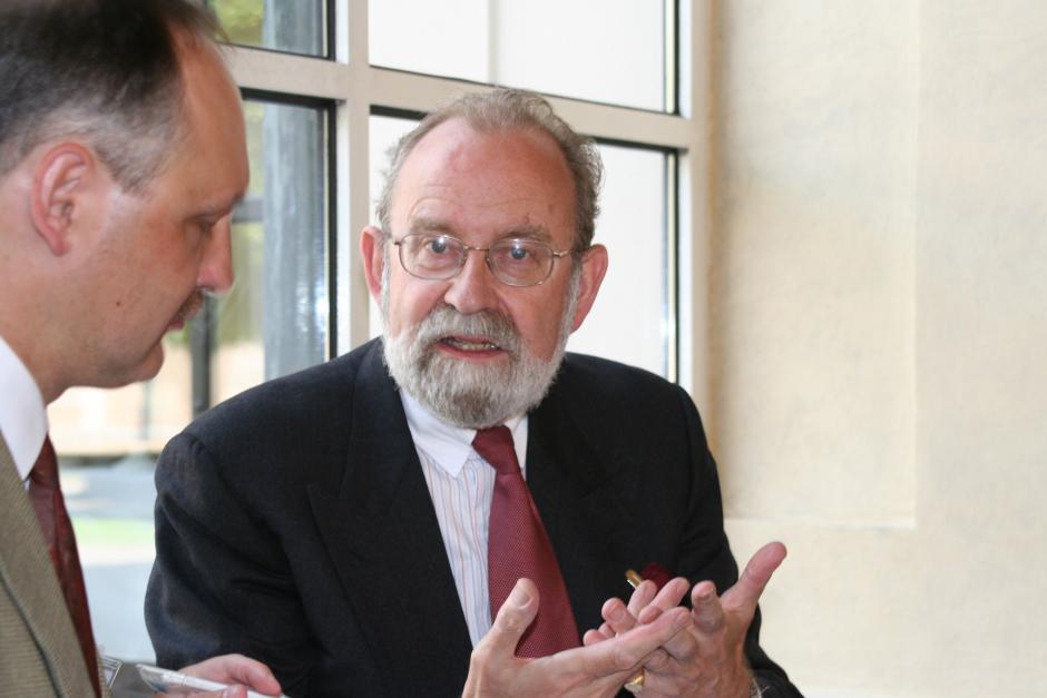 Bernard Snoy (right), Co-ordinator of OSCE Economic and Environmental Activities, interviewed in Prague, 21 May 2007.