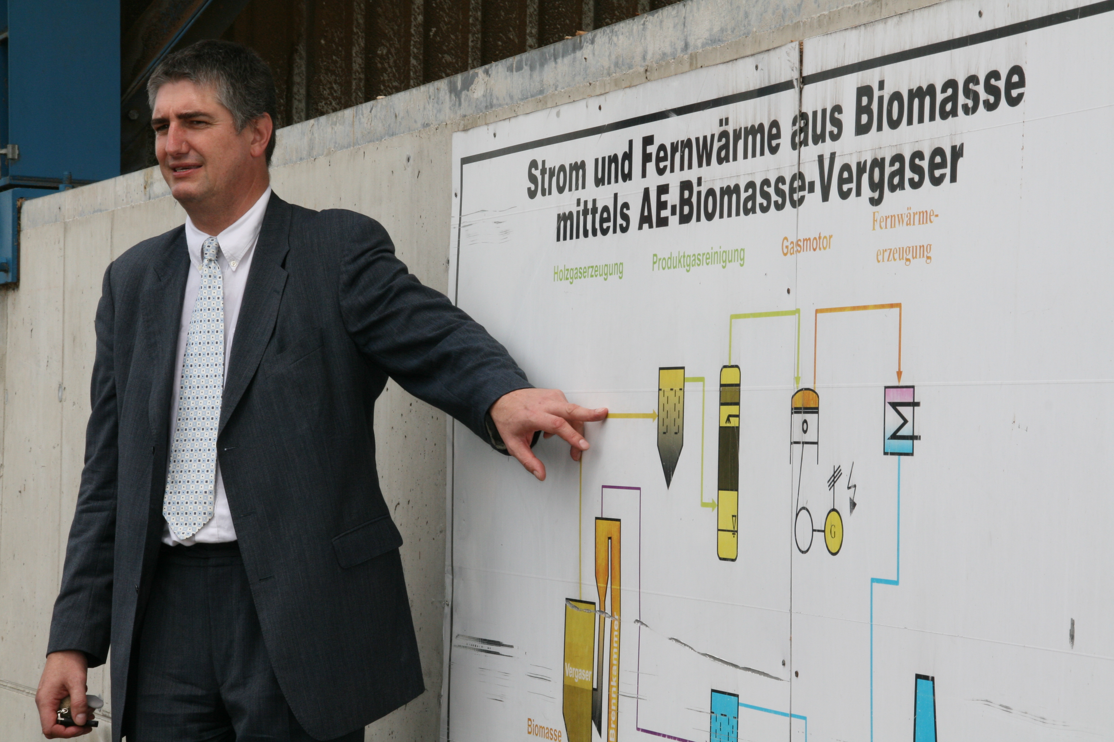 During a study visit of OSCE representatives to the European Center for Renewable Energy in Güssing, Austria, Reinhard Koch, the centre's director, explains how the biomass power plant works, 5 June 2007.