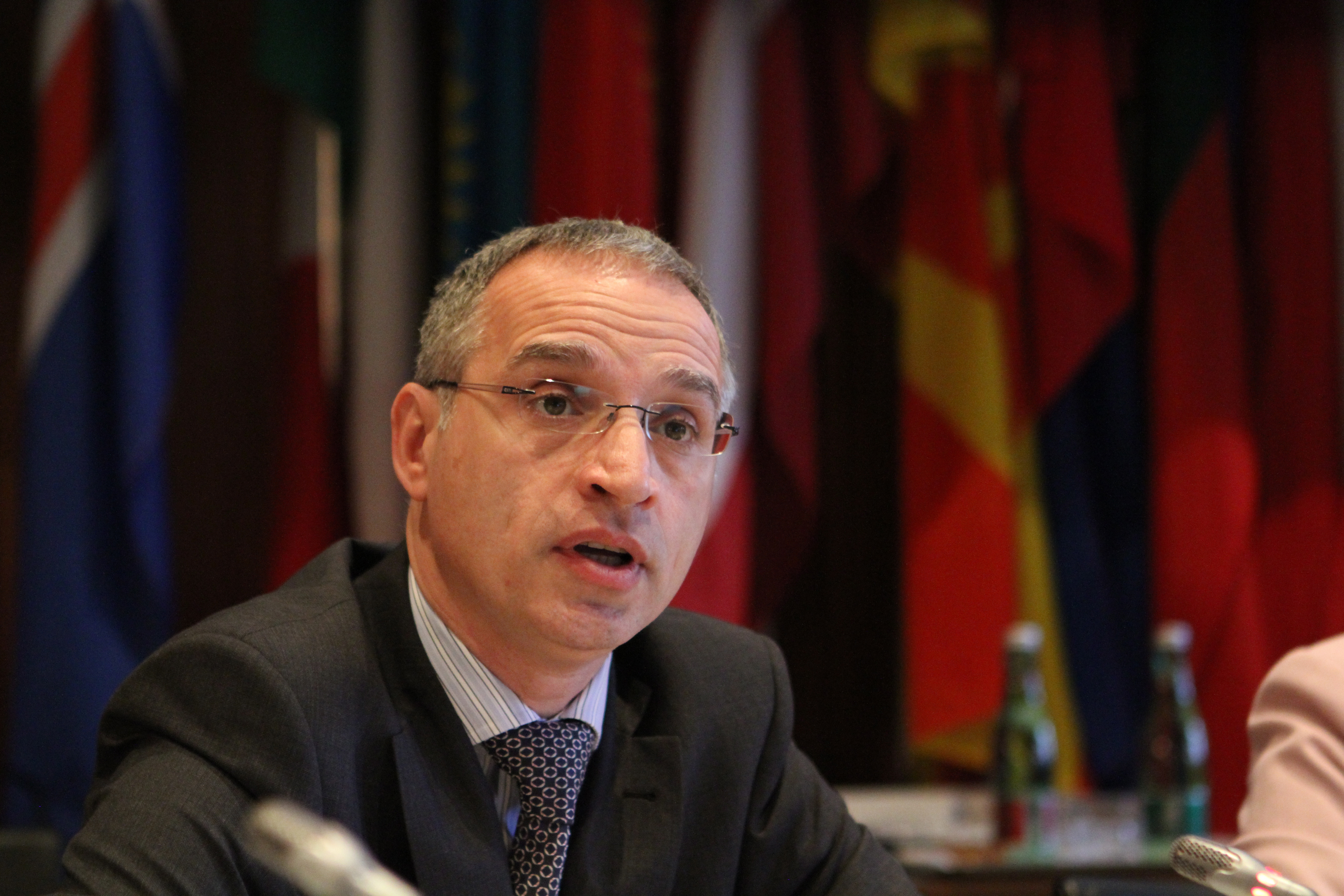 Goran Svilanovic, Co-ordinator of OSCE Economic and Environmental Activities, addresses a meeting on road and railway transport financing, Vienna, 17 November 2010.