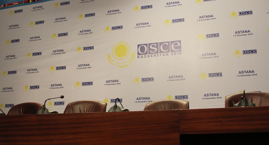 Una pancarta de la OSCE, Astana, 28 de noviembre de 2010. (OSCE/Jonathan Perfect)