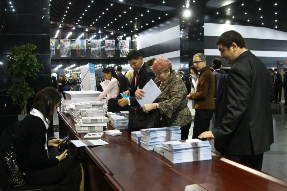 Participantes en la Conferencia de Examen de la OSCE (Astana), que precedió a la Cumbre, examinando diversas publicaciones, Astana, 26 de noviembre de 2010.