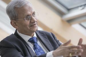 Sundeep Waslekar, cofundador y presidente del grupo de reflexión Strategic Foresight Group, con sede en la India, habla de la cooperación y la seguridad en materia de agua, Viena, 28 de marzo de 2018. (OSCE/Lucia Carmona)