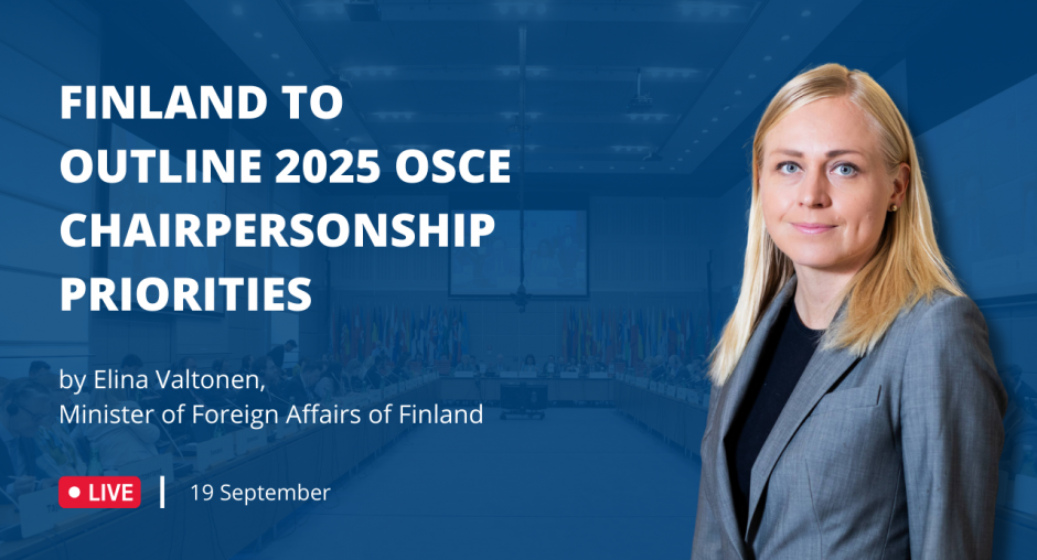On 19 September, Minister of Foreign Affairs of Finland, Elina Valtonen, will outline the priorities of the incoming Finnish Chairpersonship for 2025 to the Permanent Council in Vienna.