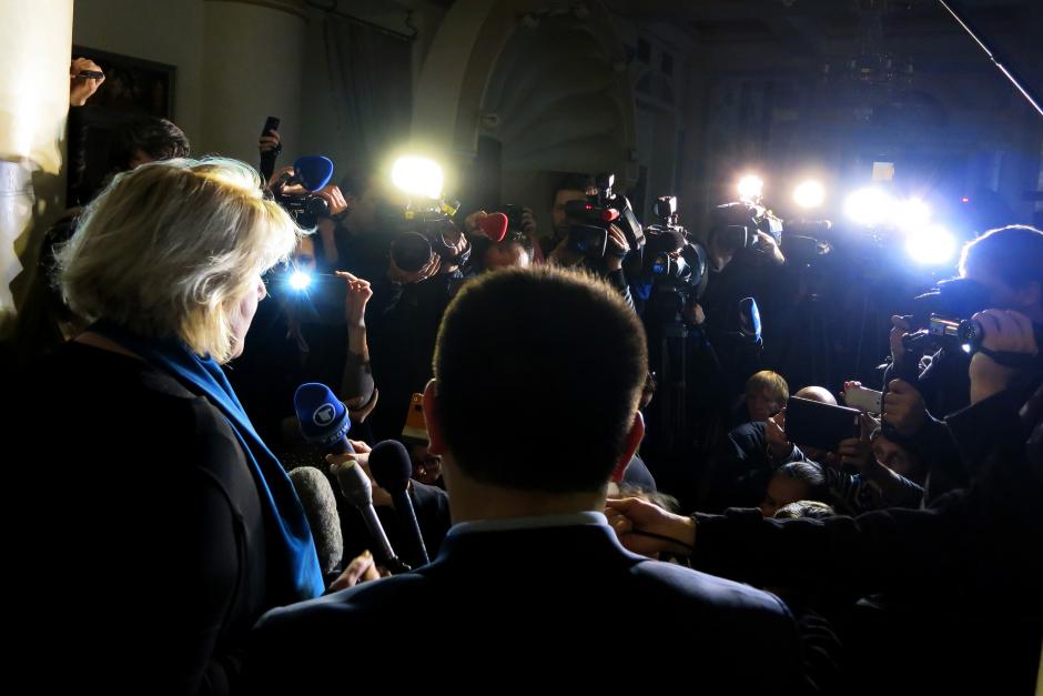 OSCE Representative on Freedom of the Media Dunja Mijatović addressing media in Simferopol, 4 March 2014.
