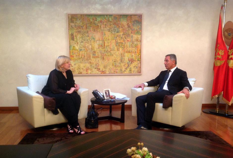 The OSCE Representative on Freedom of the Media, Dunja Mijatović, and the Prime Minister of Montenegro, Milo Đukanović, Podgorica, 2 July 2014.