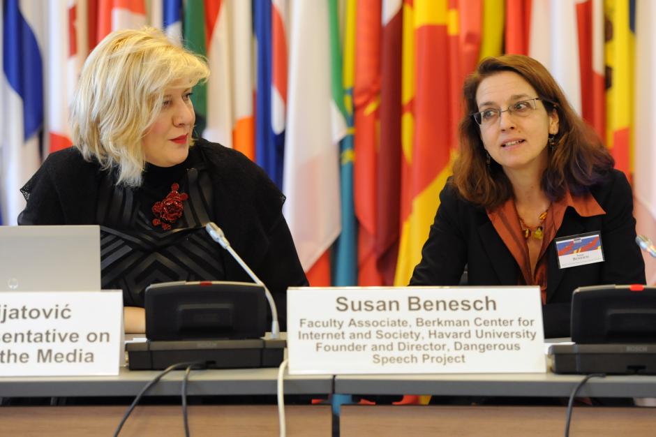 The OSCE Representative on Freedom of the Media, Dunja Mijatović, and Susan Benesch, Harvard University, at the conference Freedom of Expression for Tolerance and Non-Discrimination, 18 December 2014.