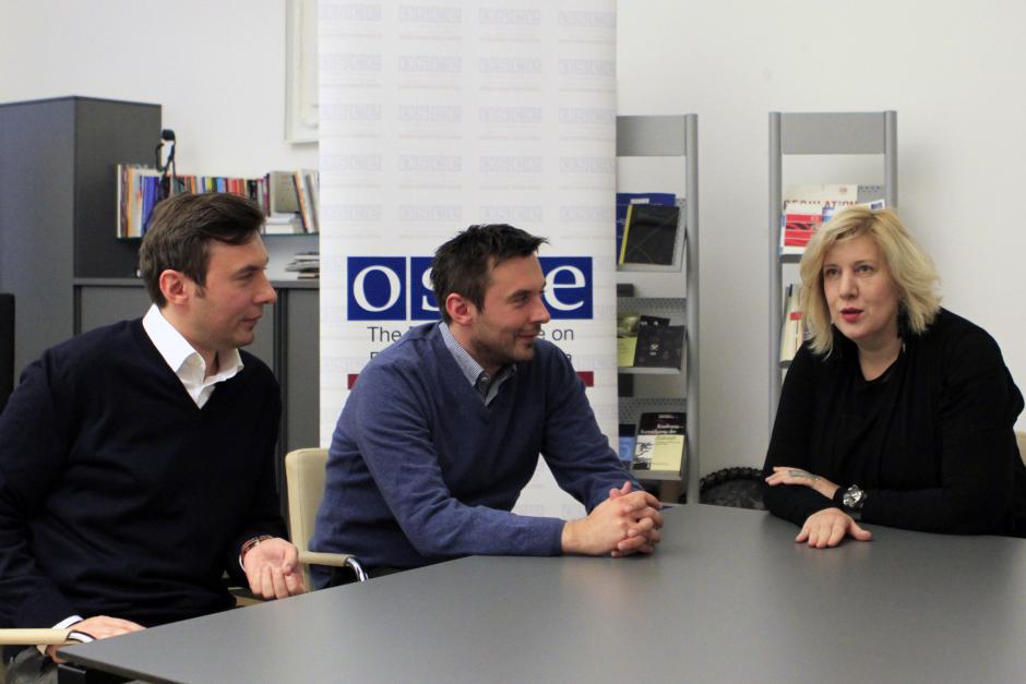 OSCE Representative on Freedom of the Media Dunja Mijatović meeting with directors of Klix.ba media portal Dario and Mario Šimić in Vienna, 20 January 2015.