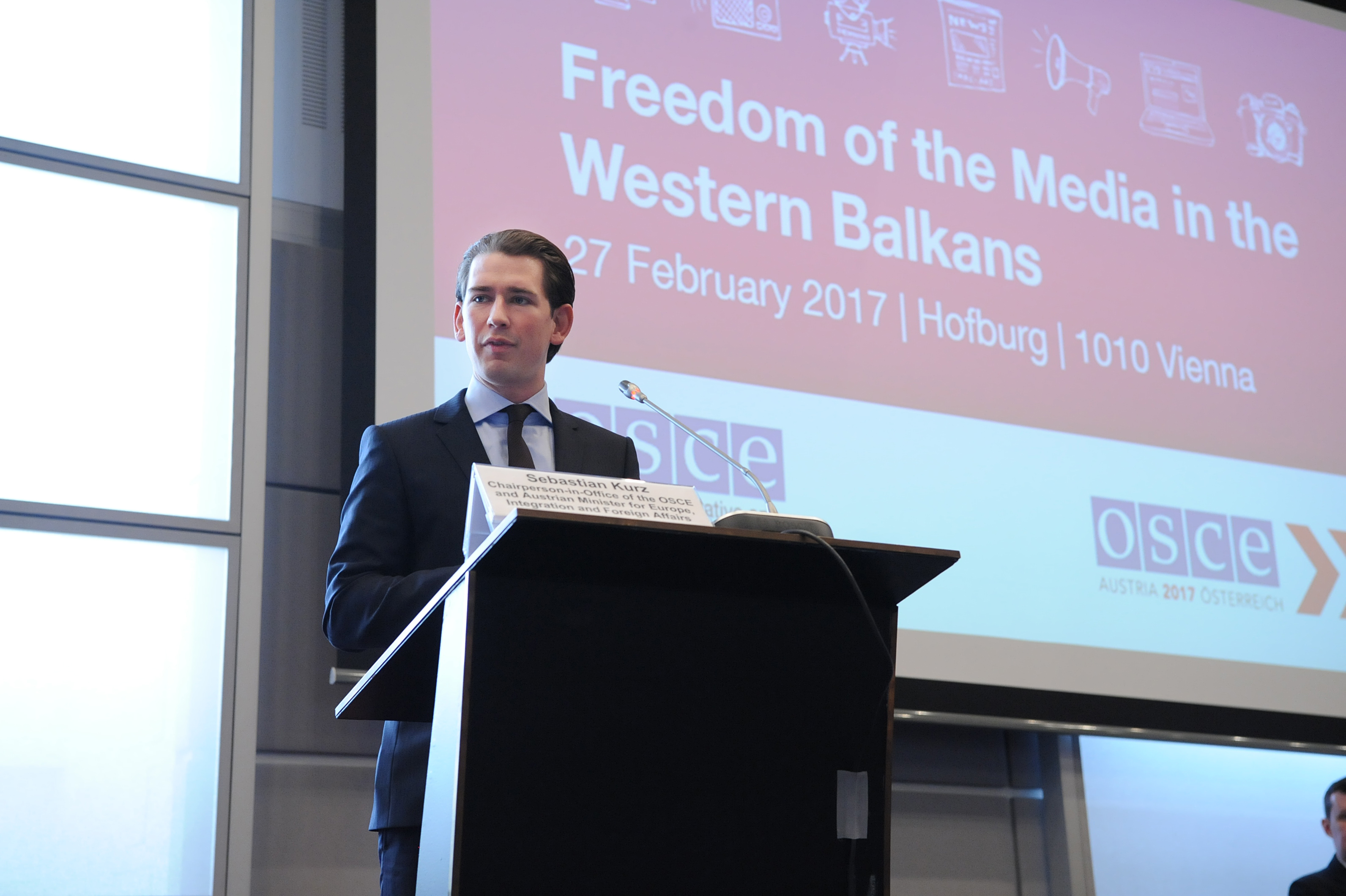 OSCE Chairperson-in-Office Sebastian Kurz at the opening of the Freedom of the Media in the Western Balkans conference