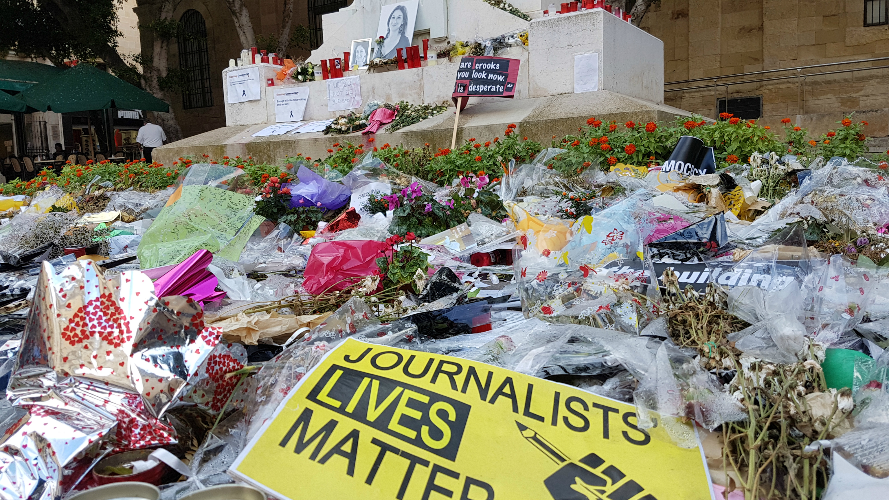Flowers for Daphne Caruana Galizia at the foot of the Great Siege monument, Valletta, 3 November 2017.