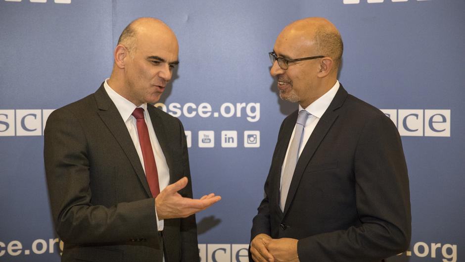 The OSCE Representative on Freedom of the Media Harlem Désir (r) met with the President of the Swiss Confederation Alain Berset, Vienna, 8 January 2018.
