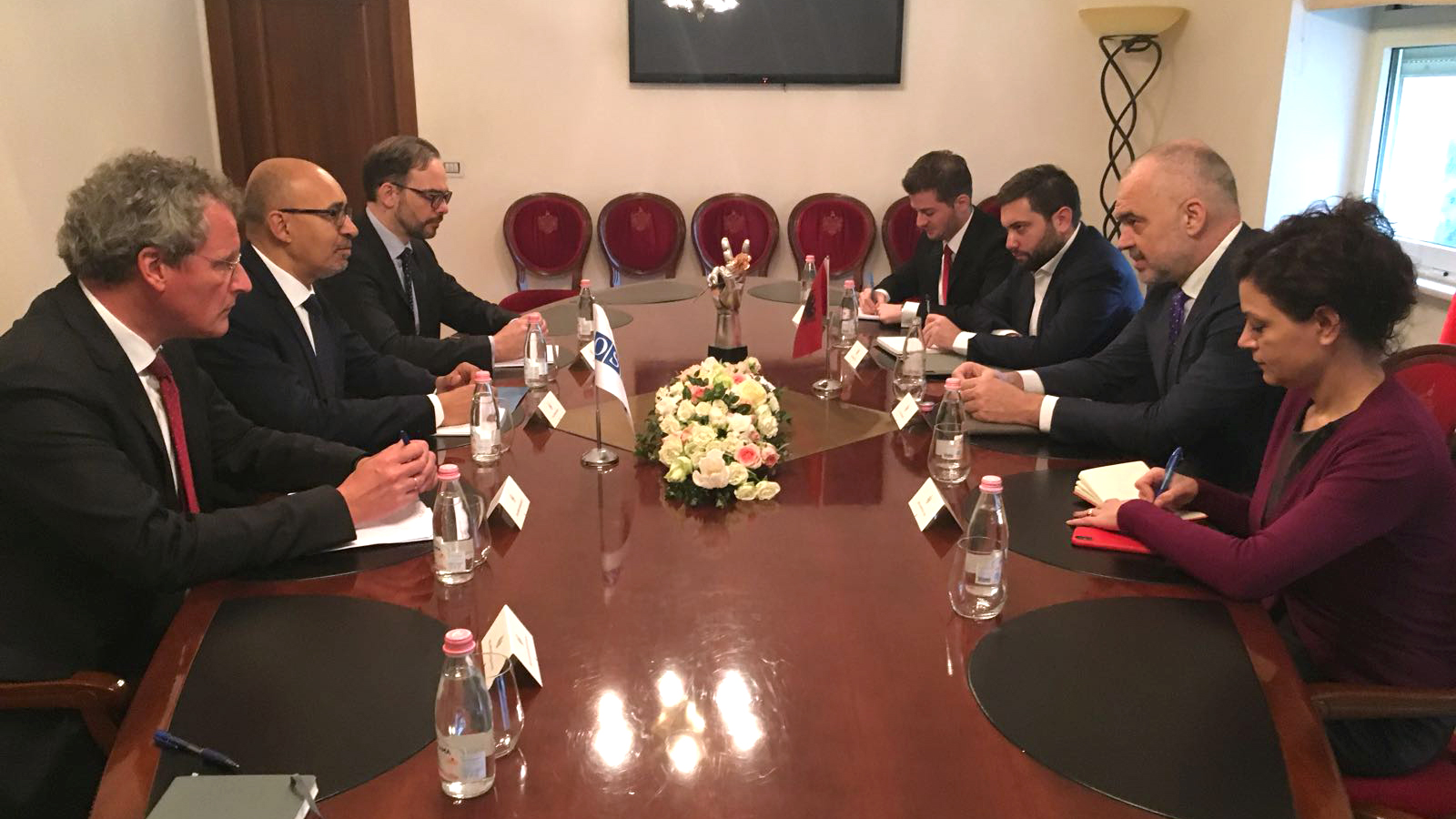 OSCE Representative on Freedom of the Media Harlem Désir meeting Prime Minister of Albania, Edi Rama, Tirana, 13 February 2018.