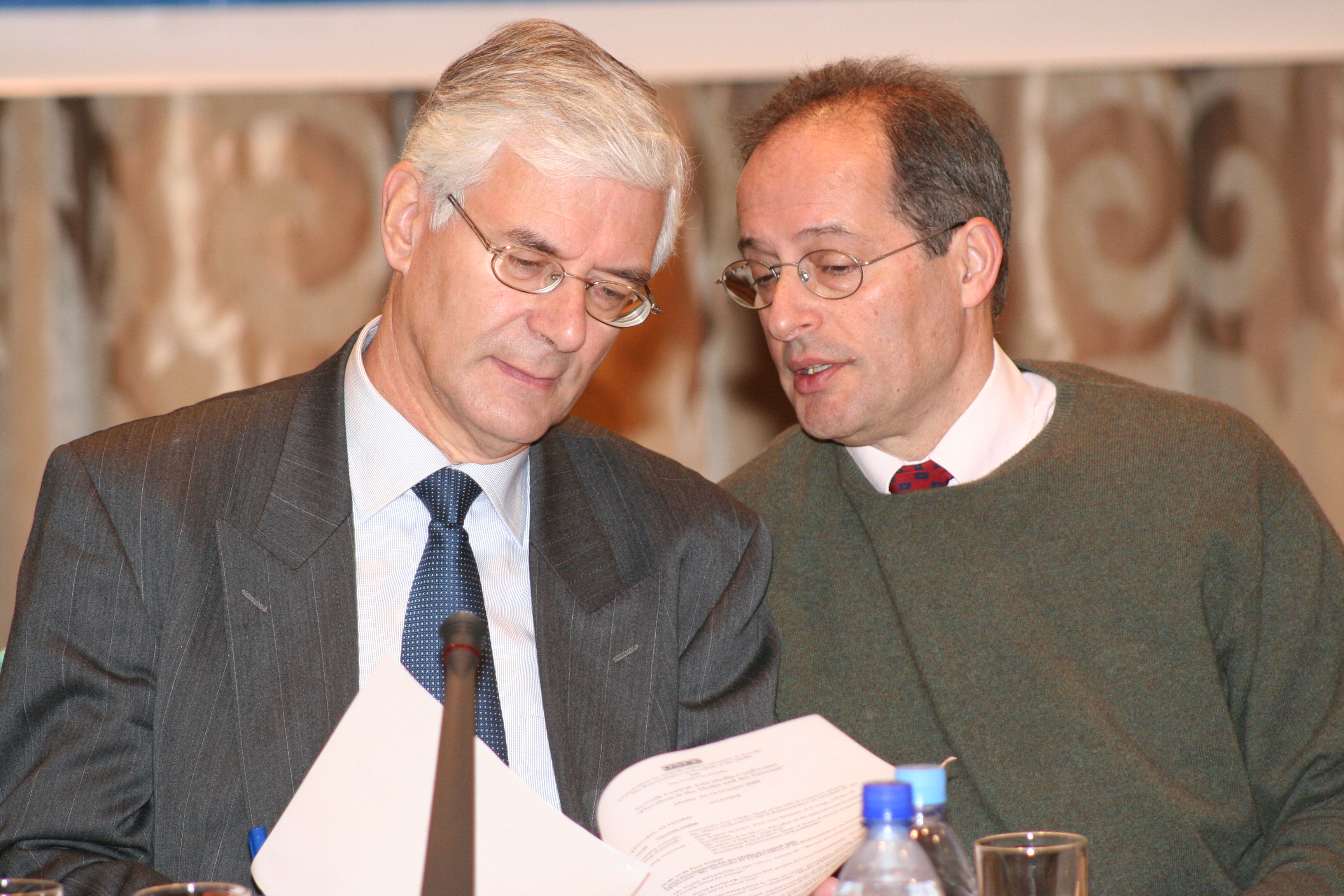 The OSCE Representative on Freedom of the Media, Miklos Haraszti (right), with the Head of the OSCE Centre in Almaty, Ambassador Ivar Vikki, at the 7th Central Asia Media Conference in Almaty, Kazakhstan, 13-14 October 2005.