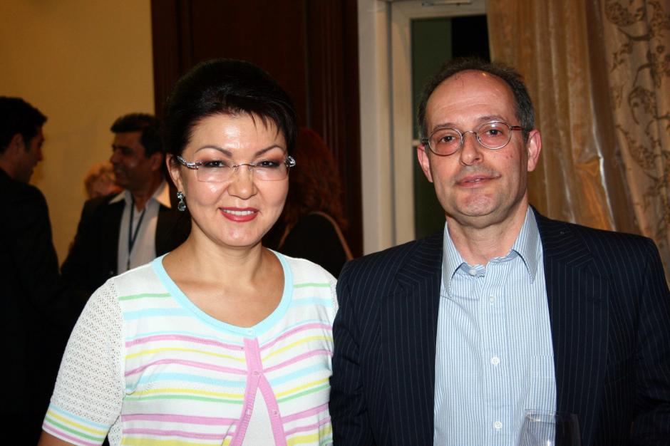 Miklos Haraszti (right), OSCE Representative on Freedom of the Media, with Dariga Nazarbayeva, member of Kazakh Parliament and Head of the country's Congress of Journalists, in Almaty, 20 April 2007.