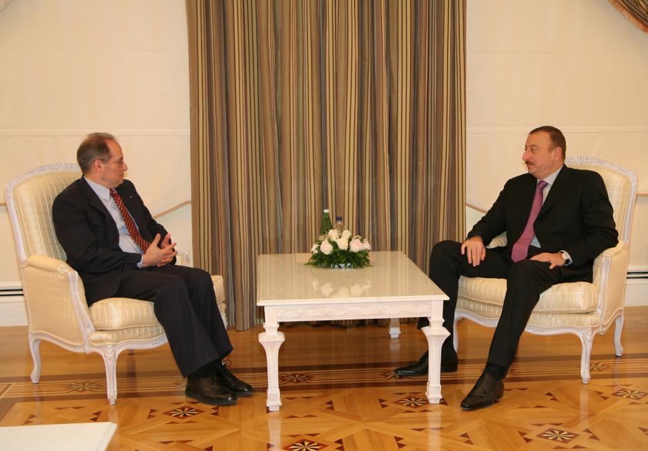 OSCE Representative on Freedom of the Media, Miklos Haraszti (left) meets the President of Azerbaijan, Ilham Aliyev, in Baku, 27 April 2007.
