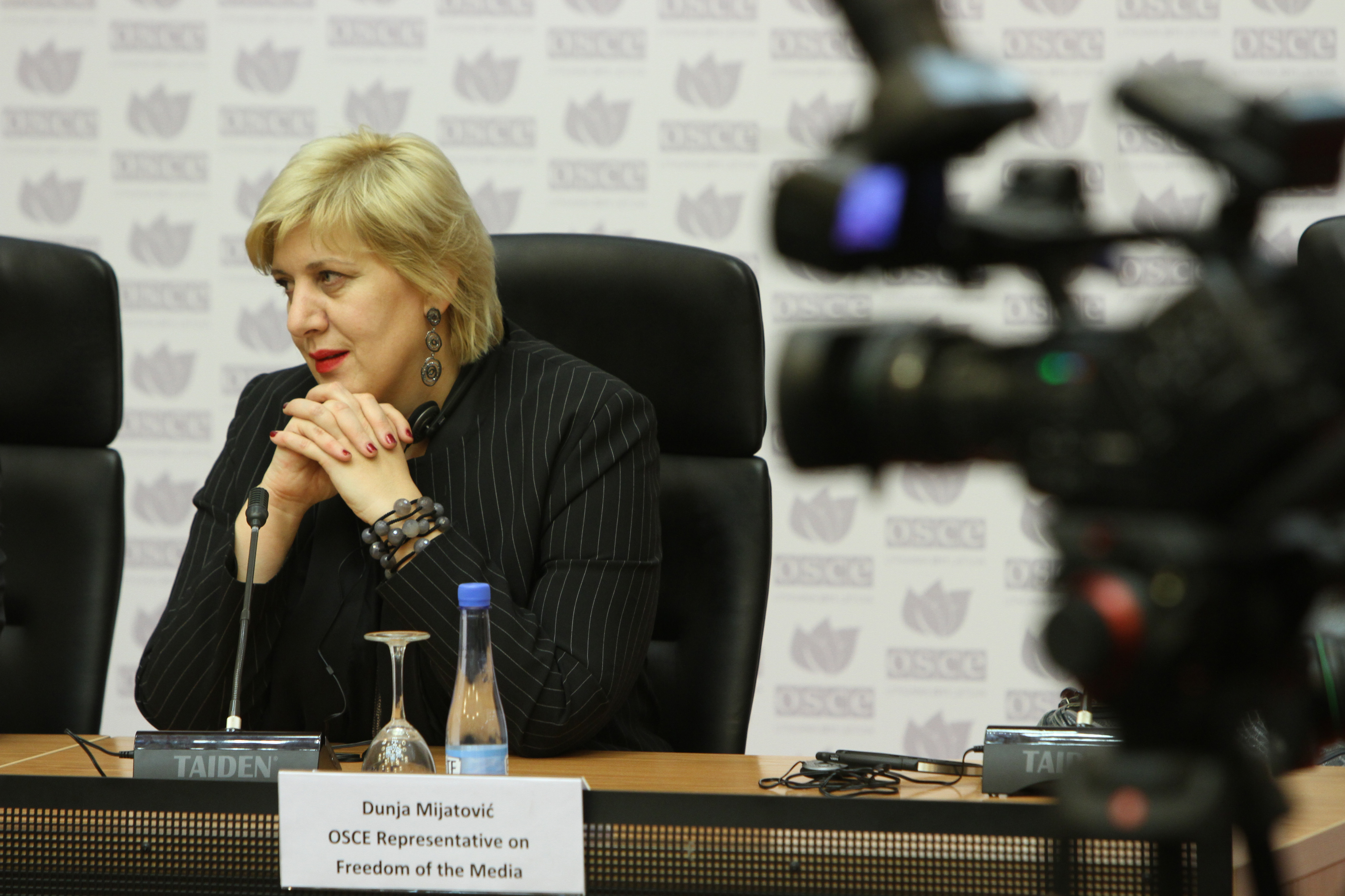 Dunja Mijatovic, the OSCE Representative on Freedom of the Media, at a news conference at the OSCE Ministerial Council in Vilnius, 6 December 2011.