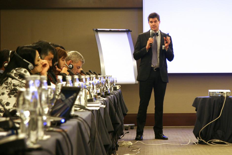 Doug Griffin, a director of Albany Associates, gives a presentation during a master class on broadcast regulation in Central Asia and the South Caucasus, organized by the Office of the OSCE Representative on Freedom of the Media, in co-operation with Albany Associates, Istanbul, 26 March 2012.