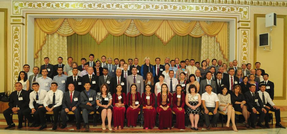 Participants at the 14th Central Asia Media Conference pose for a family photo, Ashgabat, 5 July 2012.