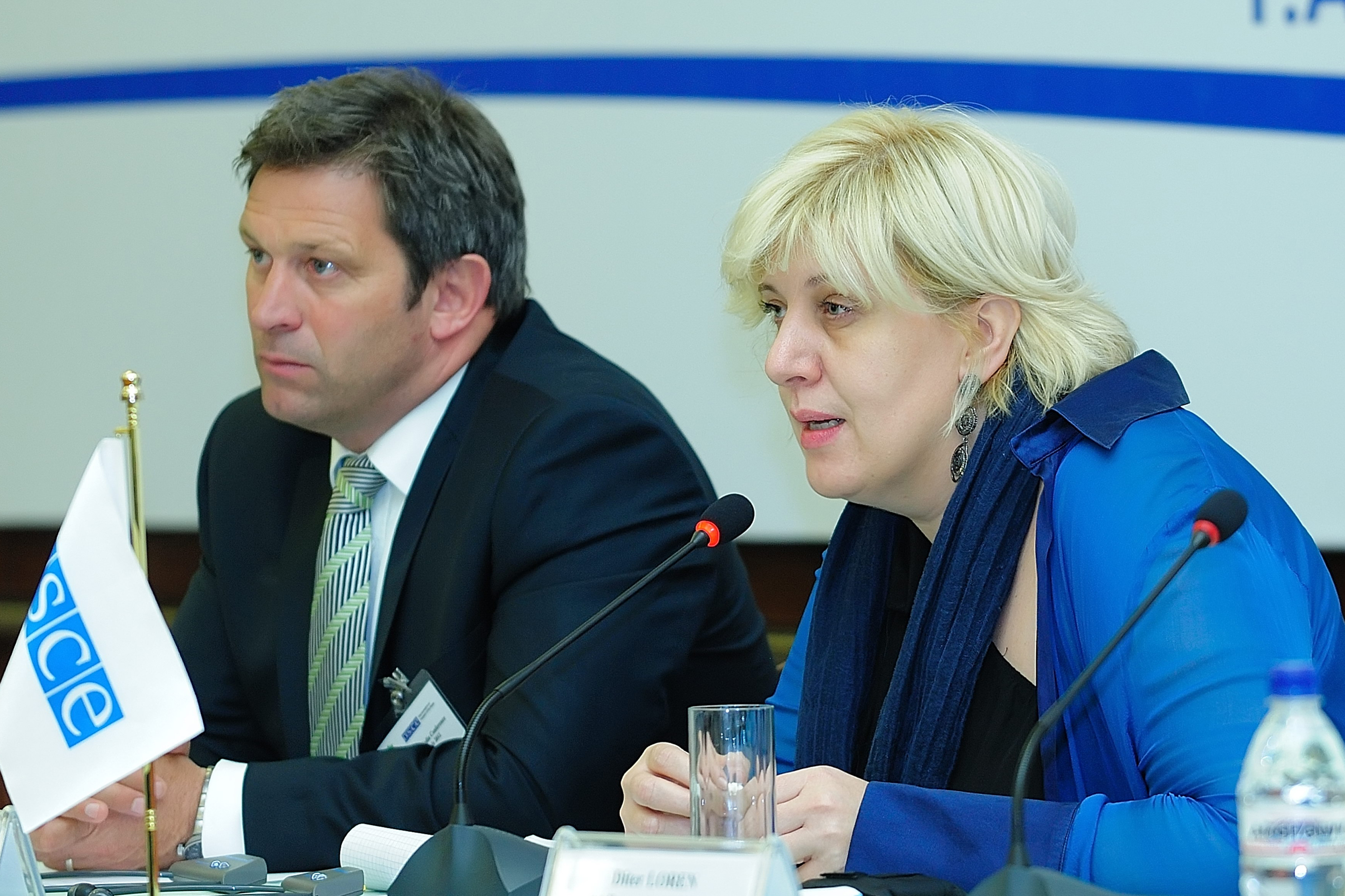 OSCE Representative on Freedom of the Media, Dunja Mijatovic (r) and Dieter Loraine of Albany Associates at the 14th Central Asia Media Conference in Ashgabat on 4-5 July 2012.