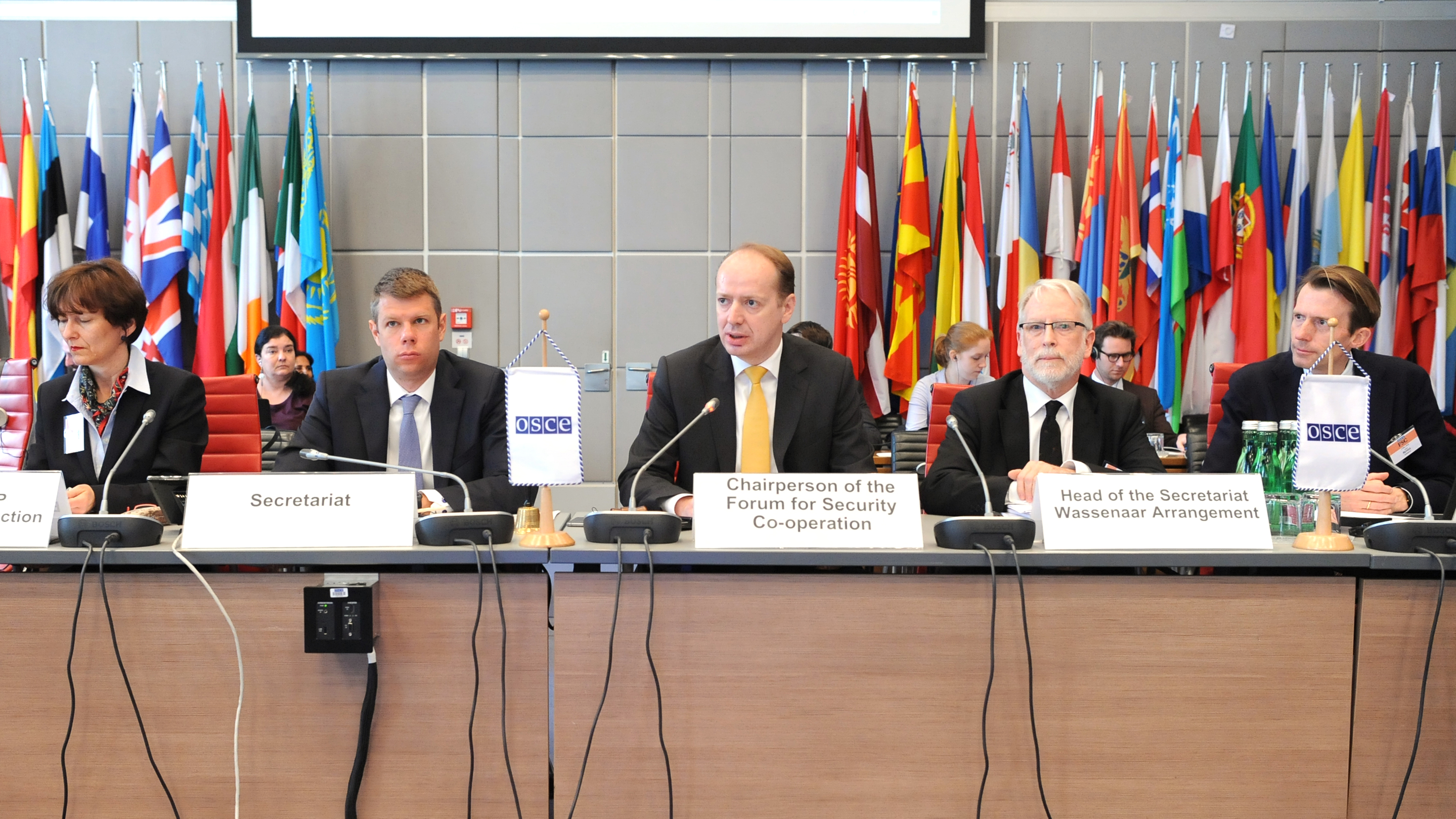 Speakers at the OSCE Forum for Security Co-operation, Vienna, 2 May 2018.
