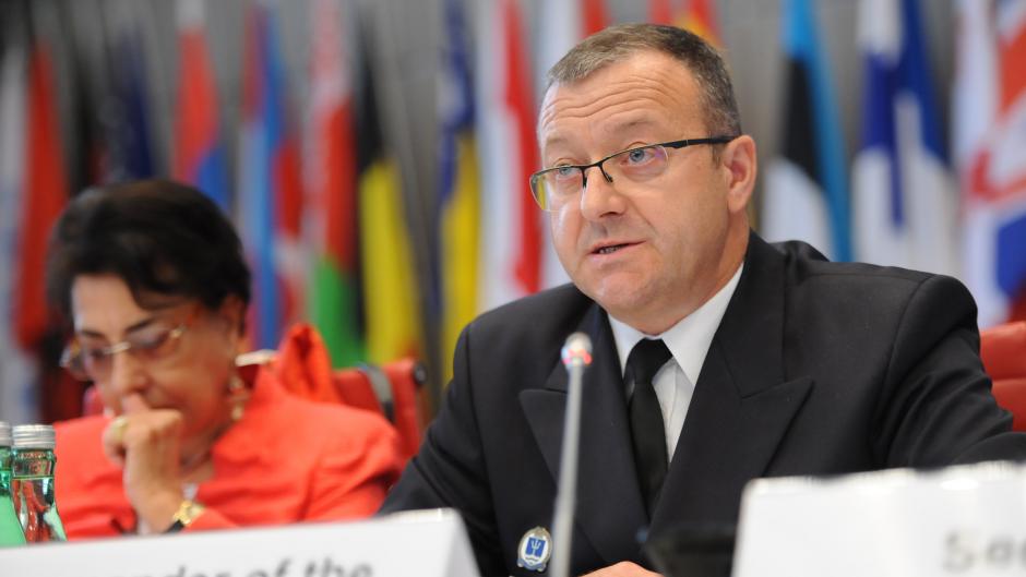 Captain Boris Geršak, Commander of the Slovenian Naval Force, speaking at the joint session of the Forum for Security Co-operation and the Permanent Council in Vienna, 11 July 2018.