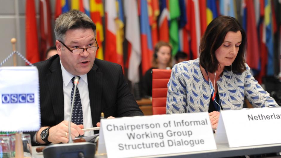 Ambassador Jeroen Boender, Chair of the Structured Dialogue 2019, speaks at the 7th Meeting of the IWG Structured Dialogue, Vienna, 20 March 2019.