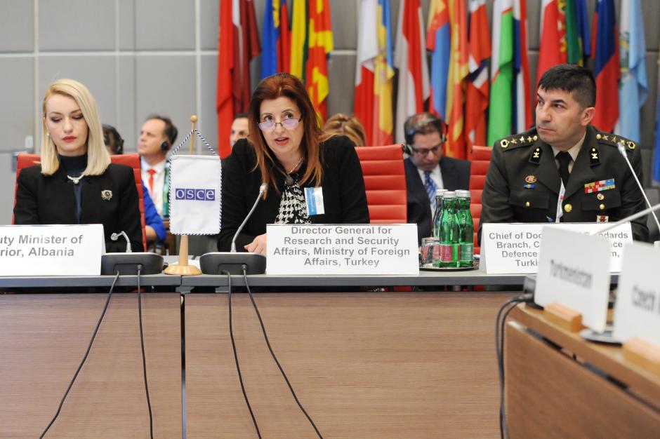 Aylin Taşhan (c), Director General for Research and Security Affairs at Turkey’s Foreign Ministry, speaking at a joint meeting of the FSC and PC, Vienna, 26 February 2020.