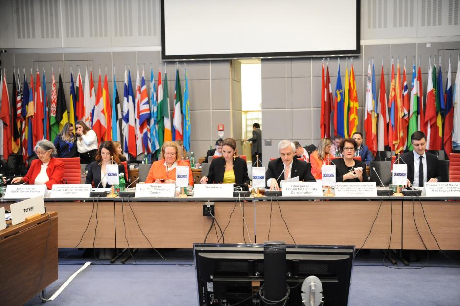 Speakers of the OSCE Forum for Security Co-operation meeting, under Turkey’s FSC Chairmanship, on UN Security Council Resolution 1325 on Women, Peace and Security, Vienna, 11 March 2020.