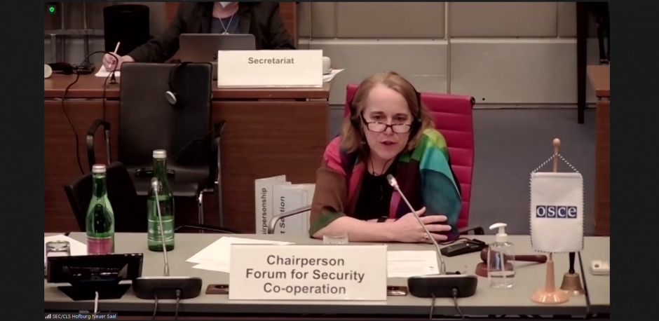 Courtney Austrian, United States Chargé d’Affaires, opens the last OSCE Forum for Security Co-Operation (FSC) meeting under the United States FSC Chairpersonship, 24 March 2021.