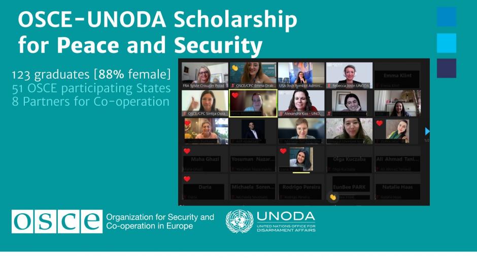 On 24 July, the 8-week online course of 2022 OSCE-UNODA Scholarship for Peace and Security training programme on arms control, disarmament and non-proliferation was concluded with 123 graduates [88% female] from 51 OSCE participating States and 8 Partners for Co-operation.