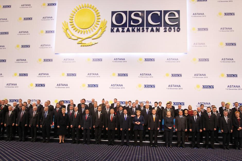 Les chefs d’État et de gouvernement posent pour une photo de famille lors du Sommet de l’OSCE à Astana, le 1er décembre 2010.