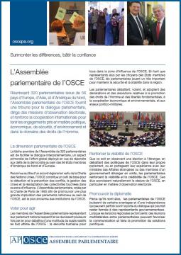 Réunissant 320 parlementaires issus de 56 pays d’Europe, d’Asie, et d’Amérique du Nord, l’Assemblée parlementaire de l’OSCE fournit une tribune pour le dialogue parlementaire, dirige des missions d’observation électorale, et renforce la coopération internationale pour tenir les engagements pris en matière politique, économique, de sécurité, d’environnement et dans le domaine des droits de l’Homme.
