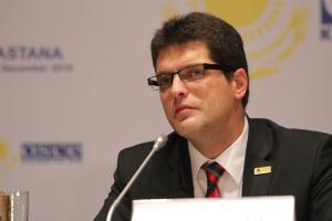 Janez Lenarcic, Directeur du Bureau des Institutions Démocratiques et des Droits de l'Homme, lors d'une conférence de presse pendant le Sommet de l'OSCE à Astana, 1er décembre 2010.