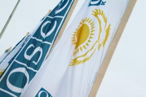 Des drapeaux aux couleurs de l’OSCE, Astana, le 26 novembre 2010.