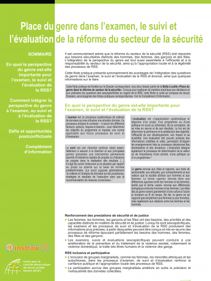 Boîte à outils «Place du genre dans la réforme du secteur de la sécurité»- Note pratique 12