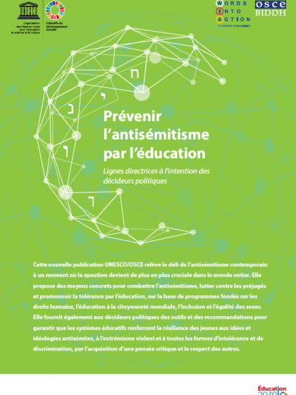 Cette nouvelle publication UNESCO/OSCE relève le dé_ de l’antisémitisme contemporain à un moment où la question devient de plus en plus cruciale dans le monde entier. Elle propose des moyens concrets pour combattre l’antisémitisme, lutter contre les préjugés et promouvoir la tolérance par l’éducation, sur la base de programmes fondés sur les droits humains, l’éducation à la citoyenneté mondiale, l’inclusion et l’égalité des sexes. Elle fournit également aux décideurs politiques des outils et des recommandations pour garantir que les systèmes éducatifs renforcent la résilience des jeunes aux idées et idéologies antisémites, à l’extrémisme violent et à toutes les formes d’intolérance et de discrimination, par l’acquisition d’une pensée critique et le respect des autres.