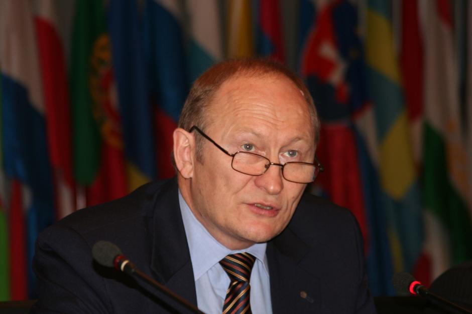 Estonian Defence Minister Jaak Aaviksoo addresses a workshop on cyber security organized by the OSCE Forum for Security Co-operation, Vienna, 17 March 2009.