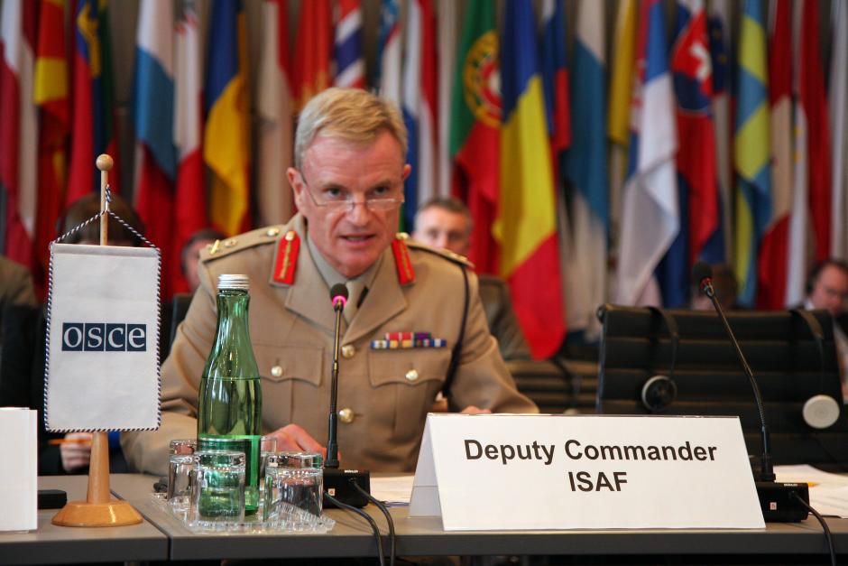 Lieutenant-General J. B. Dutton, Deputy Commander of NATO's International Security Assistance Force in Afghanistan, during a presentation to the Forum for Security Co-operation in Vienna, 14 October 2009.