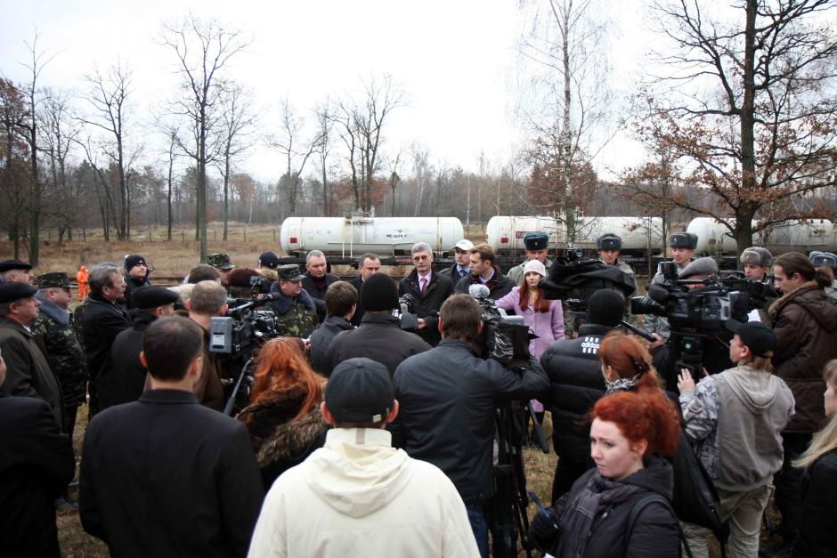 The OSCE Project Co-ordinator in Ukraine, Lubomir Kopaj, speaks to journalists at an event to mark an OSCE project that will help Ukraine safely dispose of the toxic rocket fuel component melange. Kalynivka, Vinnytsya region. 18 November 2009.