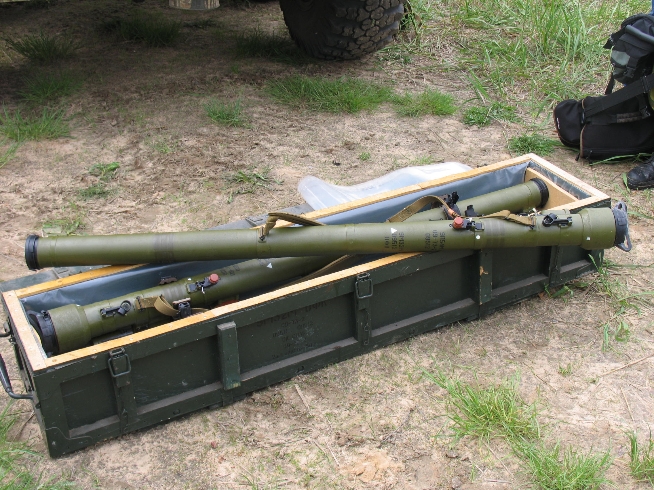 Shoulder fired "Strela-IIM" anti-aircraft missiles before destruction near the city of Sluck, Belarus, 25 May 2005. This was part of OSCE efforts to eliminate surplus small arms and light weapons and improve stockpile security and management.