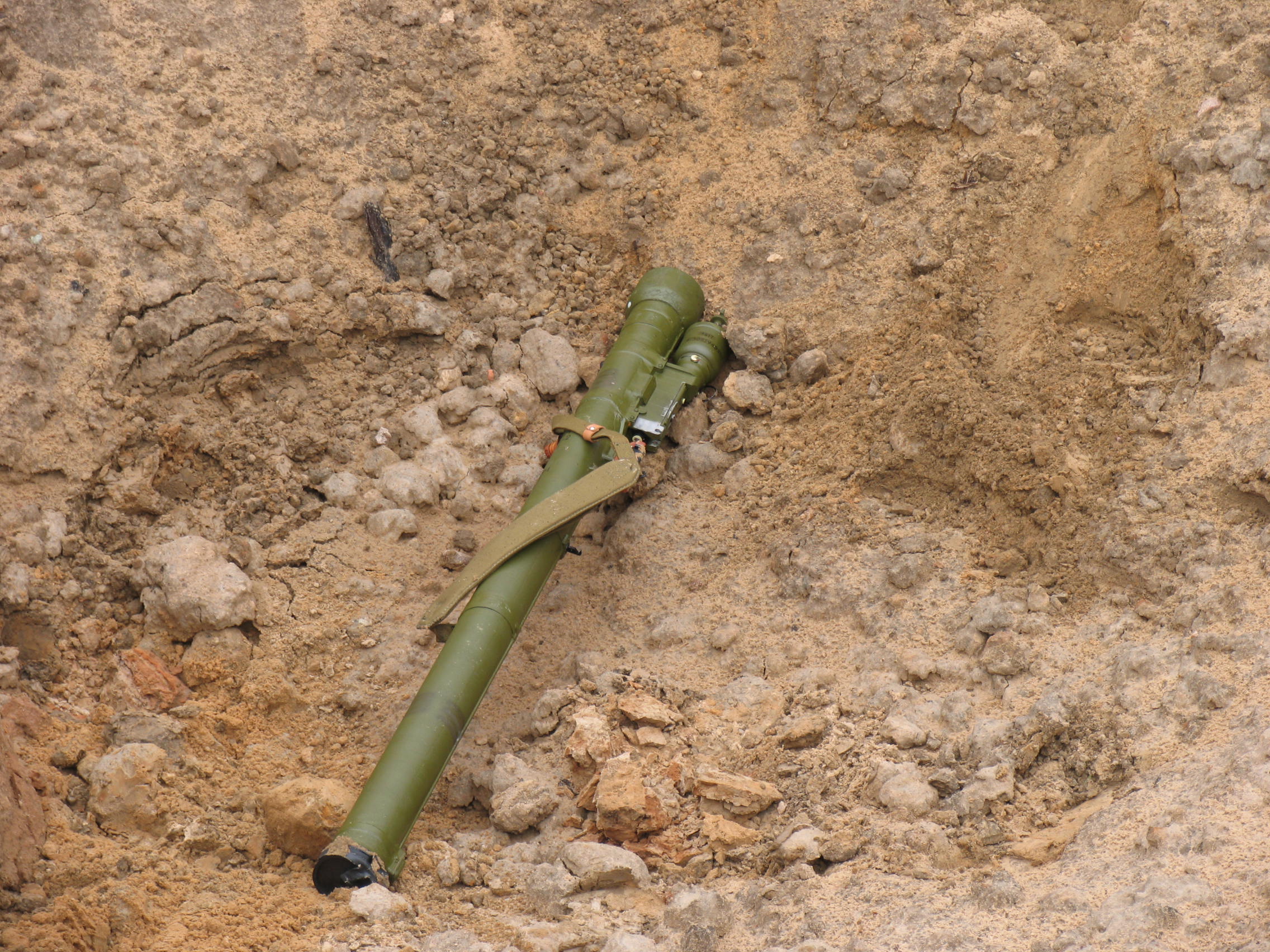 A shoulder fired "Strela-IIM" anti-aircraft missile before destruction near the city of Sluck, Belarus, 25 May 2005, part of OSCE efforts to eliminate surplus small arms and light weapons.