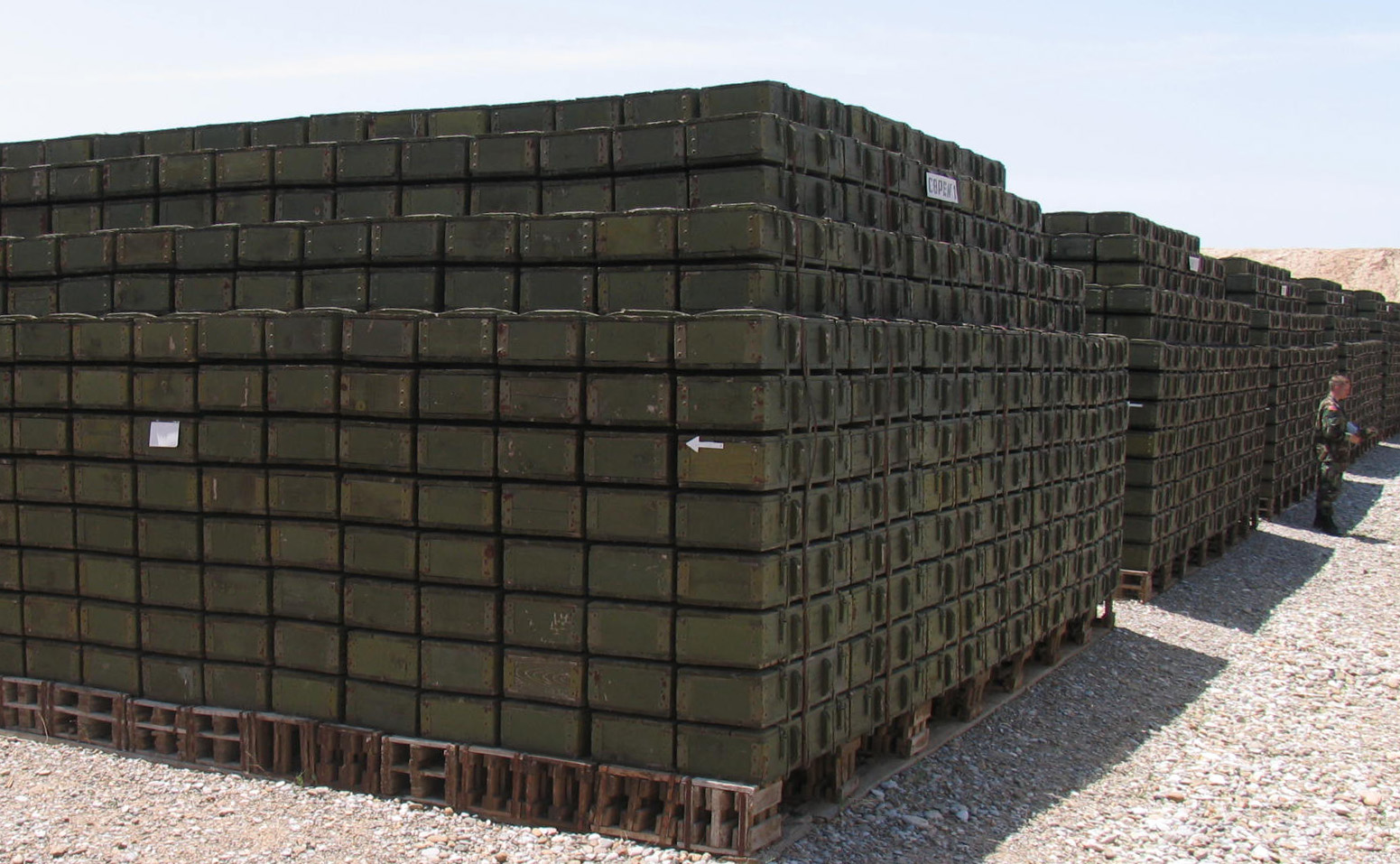 Conventional ammunition designated for disposal stored outdoor at the Aris Central Arsenal, near Chemkent, Kazakhstan, 8 June