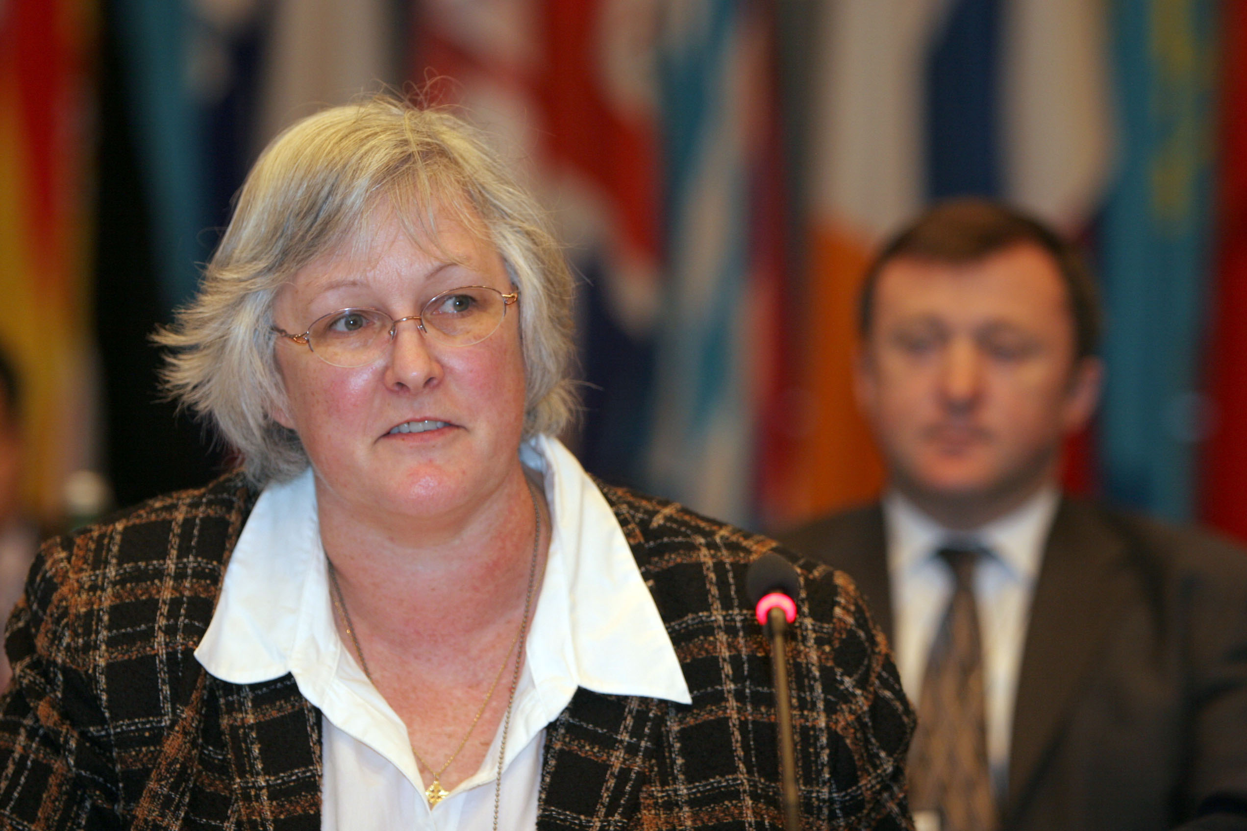 Arms Control Adviser Donna Phelan of the USA speaks at the 500th meeting of the OSCE Forum for Security Co-operation (FSC) in Vienna, 29 November 2006. Ms Phelan reflected on the first FSC meeting on 22 September 1992, which she attended.