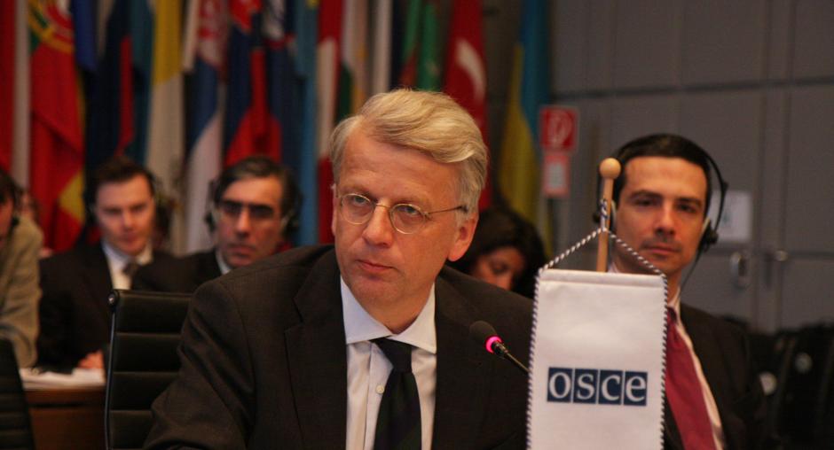The head of the EU Monitoring Mission in Georgia, Ambassador Hansjörg Haber, addresses a joint meeting of the OSCE Permanent Council and Forum for Security Co-operation, Vienna, 11 February 2009. (OSCE/Susanna Lööf)
