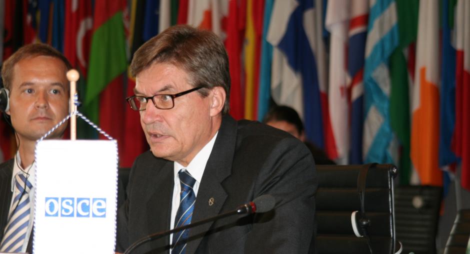 Estonian Defence Minister Jaak Aaviksoo addresses a joint meeting of the OSCE Forum for Security Co-operation and the Permanent Council, in Vienna, 4 June 2008. (OSCE/Mikhail Evstafiev)