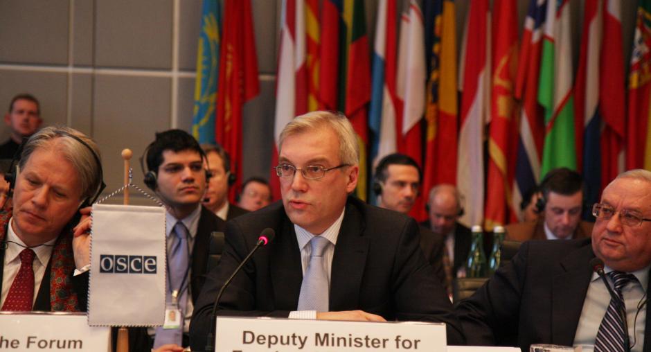 Russian Deputy Foreign Minister Alexander Groushko addresses a joint meeting of the OSCE Permanent Council and the Forum for Security Co-operation, Vienna, 18 February 2009. (OSCE/Susanna Lööf)