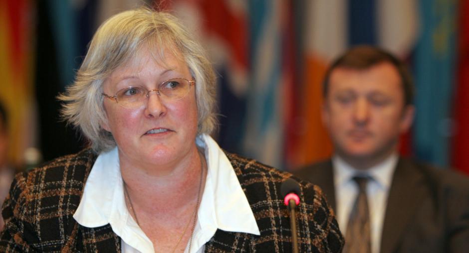 Arms Control Adviser Donna Phelan of the USA speaks at the 500th meeting of the OSCE Forum for Security Co-operation (FSC) in Vienna, 29 November 2006. Ms Phelan reflected on the first FSC meeting on 22 September 1992, which she attended. (OSCE/Mikhail Evstafiev)