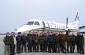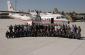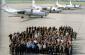 A group photo, including of members of the Ukrainian team participating in flights under the Open Skies Treaty, next to some of the aircraft used under the Treaty. (OSCE)